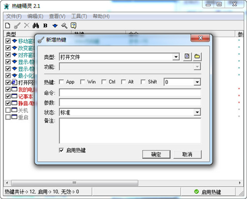 2、要禁用和启用某一个热键,选中或取消项目前的对号即可
