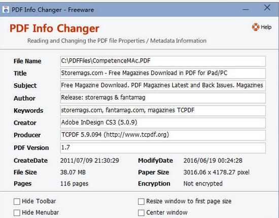 1、支持PDF所有属性,包括名称、主题、作者、关键字、创建者和发行者。