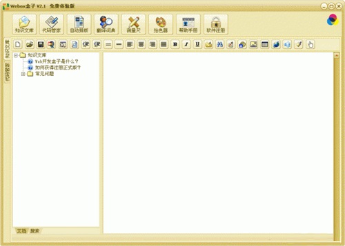 1、知识文库:符合思维罗辑的文档树状结构目录管理模式,支持图文表格混合排版,兼容Word、RTF、TXT文档导入导出。贴心设计的选择文字语音朗读功能和查询词典翻译等功能,支持选择分类目录导出生成CHM手机电子书和生成apk电子书。
