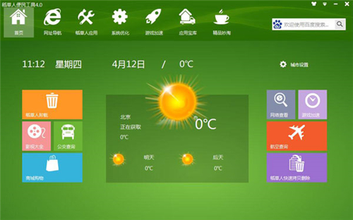 稻草人软件追求的是全方位的快速体验:包含了导航网站,闹钟提醒,在线音乐,系统工具,高清截图,记事本,flash小游戏,在线更新,