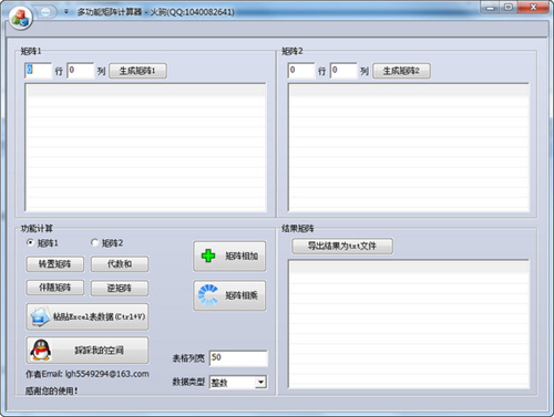 多功能矩阵计算器官方正式版是一个体积小巧、功能完备的矩阵计算软件,多功能矩阵计算器官方正式版可直接从Excel表中复制数据,减少手动输入数据的麻烦,可以计算矩阵、代数等其他功能,软件下载下来直接可以使用,简单方便。
