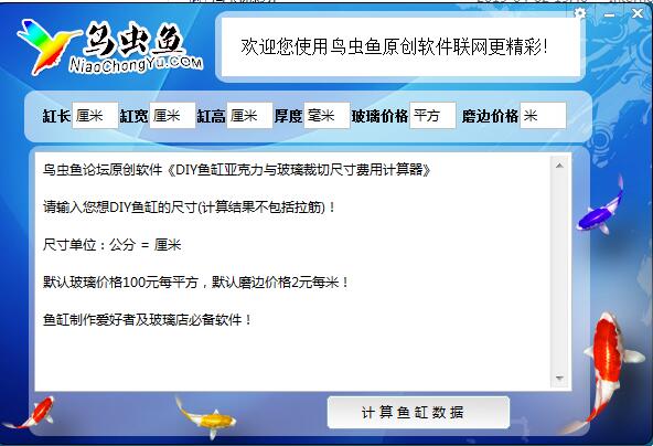 输入您想DIY鱼缸的尺寸(计算结果不包括拉筋)!