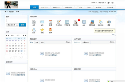 2、工作平台能提供企业日常工作需要的多种信息工具。比如,电话、传真、邮件、文档、即时通讯、语音/视频、公告、备忘、日志、计划、项目管理等等,每种工具都有特定的价值和用处。用什么工具,不用什么工具,这类工作用这种工具,那类工作用那种工具,选择权尽在企业掌控。