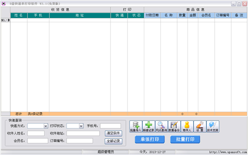 U盘快递单打印软件最新版是一款界面美观大方、安全稳定的快递单打印软件,U盘快递单打印软件最新版可单张打印快递单,也可批量打印快递单,功能强大完全满足你的快递单打印管理。它最独特的功能是可以放入U盘需安装,走到哪里达到哪里,非常便捷。