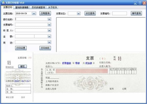 4、打印设置:打开支票打印设置界面,进行一些个性设置 ;
