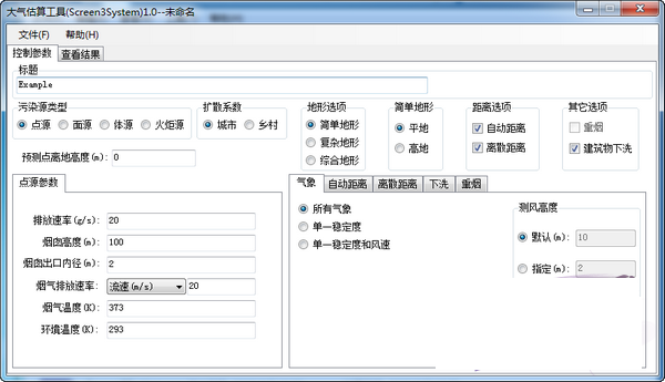 大气估算工具官方版是一款非常实用的大气污染距离估算软件,软件界面简洁大方,功能强劲实用,大气估算工具官方版可以根据污染源类型、扩散系数、地形、距离、点源等参数计算出自动化距离和离散距离,为从事大气环境评价的朋友提供参考数值。