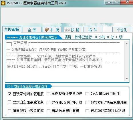 2、此时WarMH 6.0 已经处于全自动待命状态. 开启魔兽后会立即执行开启全图操作
