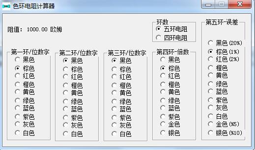 还有精确度更高的“五色环”电阻,用五条色环表示电阻的阻值大小,具体如下: