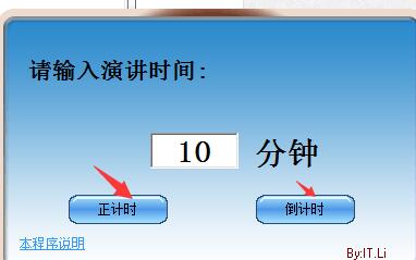1、开启软件后,输入演讲时间,点击“正计时”或“倒计时”按钮即可,支持计时停止、暂停和隐藏。
