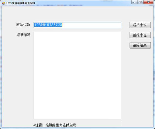 2、ems连续单号推算器单号规则源自网络,EMS老版本的单号前后各两个字母,连续的一般都一样的。