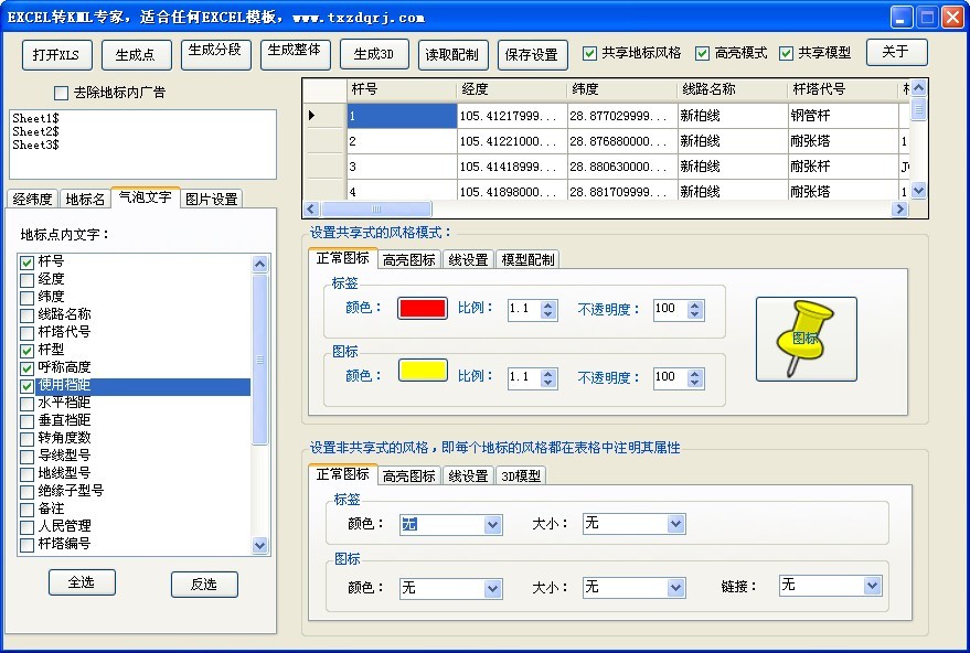 4、带有几十种常见的转换模板,从通信设计、基站定位、电力杆塔、管道线路、交通线路、政府决策等使用的多种模板格式,几乎支持任意excel模板。