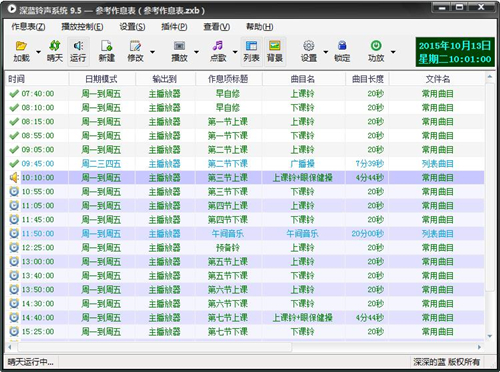 “自动运行作息表”:选中状态时,作息表按设定时间正常播放,不选中时停播作息表。
