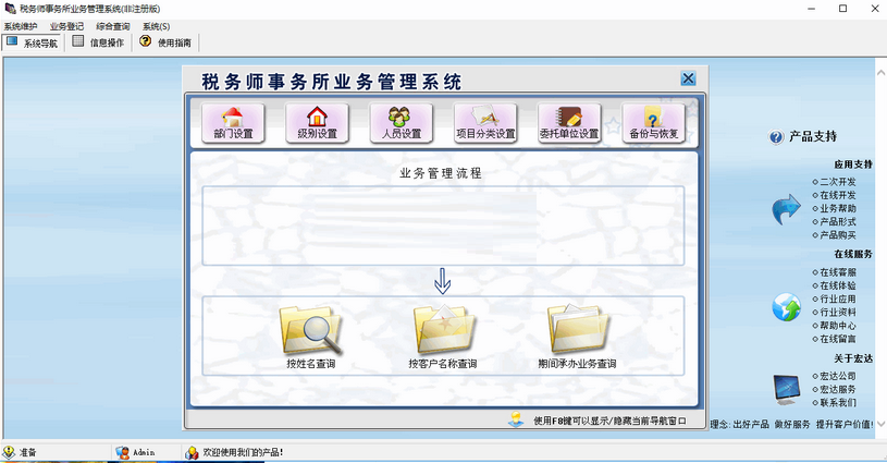 宏达税务师事务所业务管理系统电脑版是主要用于对律师事务所使用的一款专业管理的工具。宏达税务师事务所业务管理系统电脑版能够可以很好的对事务所的人员信息,业务等都能做到详细的管理操作。