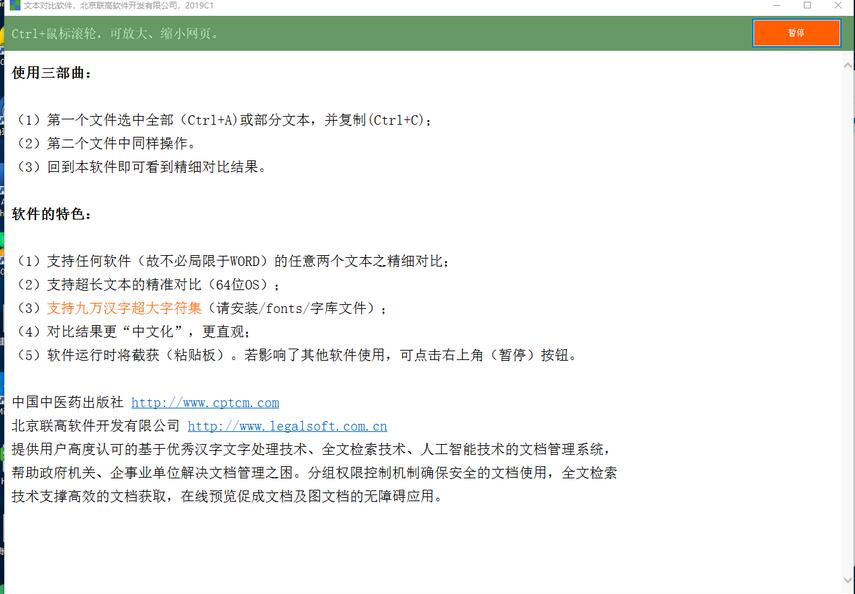 (5)软件运行时将自动截获电脑系统的剪贴板。若影响了其他软件使用,可点击右上角(暂停)按钮。