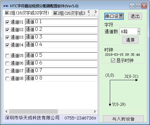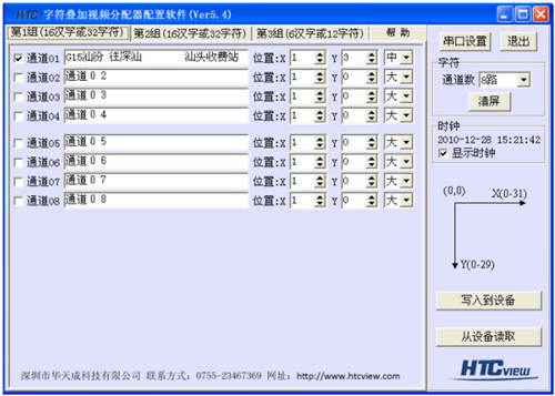 *.每个通道的内容、位置、汉字大小(大、中、小)可以自由设定;