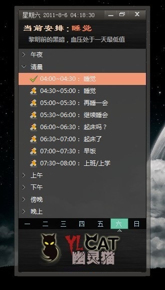 幽灵猫作息管理器官方版是一款使用简单方便、非常不错的作息管理软件,幽灵猫作息管理器官方版以用户体验为主要角度,带来类似QQ的界面简洁美观的管理体验,具有单周循环的日程管理模式,不仅容易上手,而且管理更加智能更加人性化。