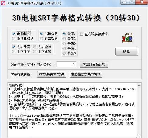 3D电视SRT字幕格式转换官方版是一款界面友好直观、使用简单方便的字幕格式转换工具,3D电视SRT字幕格式转换官方版能将SRT字幕从2D转换成3D样式,从而方便VR用户使用,同时它还可以作为后期特效软件来使用,有需要的用户可以下载来使用。