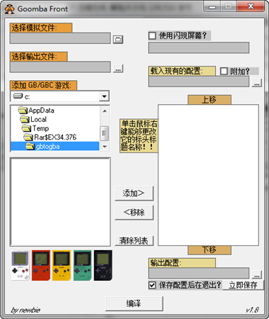 Goomba Front官方版是一款使用简单方便的游戏格式转换软件,Goomba Front官方版是GBA游戏者的福音,GB格式转GBA,用户使用该款软件,能够将GB格式游戏转换为GBA格式,需要的话赶紧下载吧。