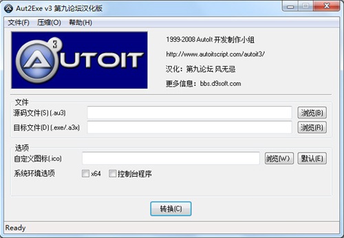 当您选择使用这种编译方式的时候,Aut2Exe 将使用当前的图标和压缩级别设置(也即上一次通过第一种方式编译时的设置)。