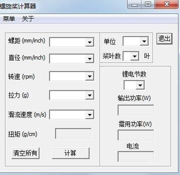 先填入参数算出某一桨叶数下的各项参数,然后选择新桨叶数并清空需计算的参数,点击”计算”重新计算。