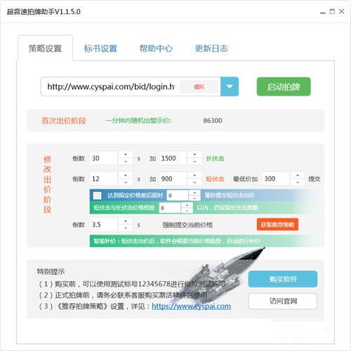 修改出价阶段,长伏击短伏击智能补价出价、强制提交以及用户输入完验证码并按enter确认之后的价格提交操作都由软件自动完成。全程中用户只需要输入验证码并按enter键即可,无特殊情况,无需鼠标操作。