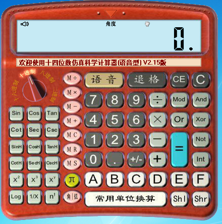 12、加入了角度与弧度计算(运算的结果可选择弧度或角度值,这取决于计算器的角度|弧度按钮选择)。