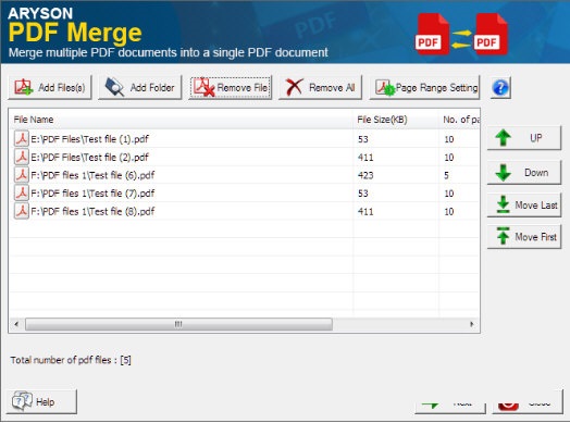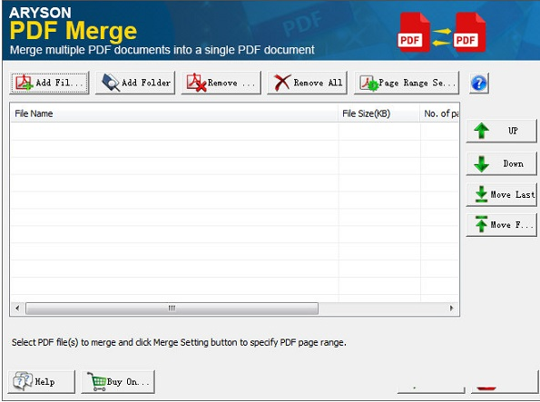 ??3、所有选定的PDF文件将在软件主界面列出。您可以使用导航按钮将它们按顺序排列。此外,还可以定义页面范围设置。