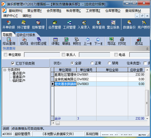 1、会员管理:会员登记、会员资料查询及登记、生日提示、到期提示、转教练、投诉、教练辅导学员查询、有效/过期会员查询、会员积分管理、入会会员期间查询;