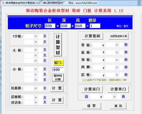韩洁陶瓷合金柜体计算系统 官方版 1.12