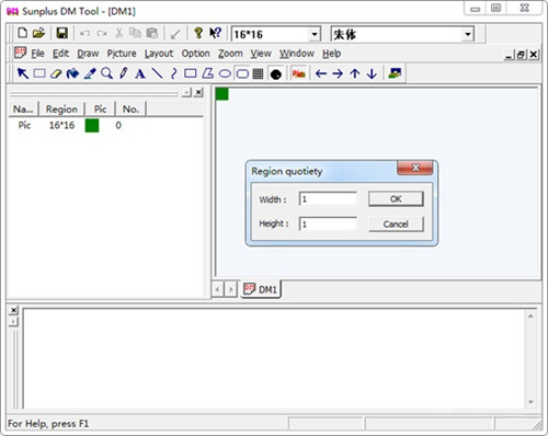 3、编辑图片:插入图片,用来选择默认图片大小的比例,在区域窗口中添加ASCII 0~127,添加任意大小的图片。