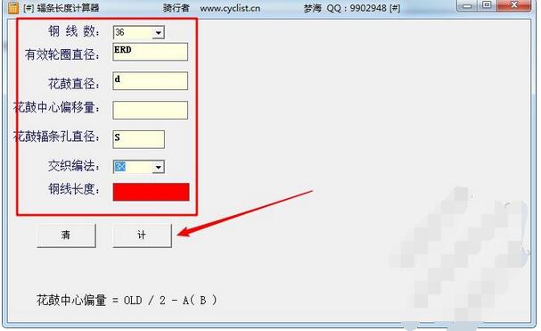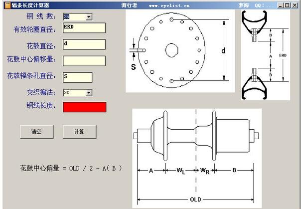 ??2、输入相关的数据,比如钢线数、有效轮圈直径等等,点击计算即可得出辐条的长度;