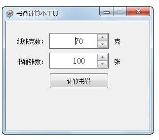 ??书脊计算小工具最新版是一款小巧实用的书脊厚度计算器,适用于印刷行业人员使用,使用该软件的用户可以一键计算出胶版纸、铜版纸和轻型纸的书脊厚度,可以很好的帮助用户制作出封面纸张,使用非常的方便。