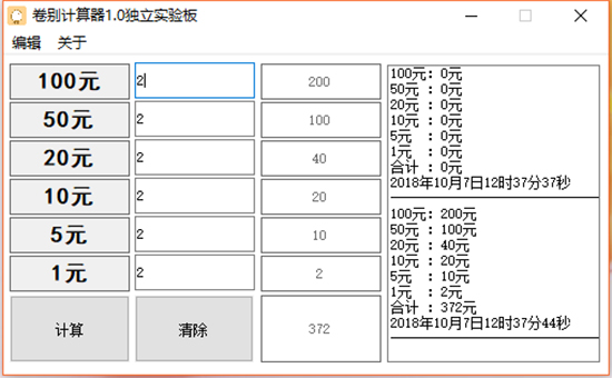 卷别计算器是一款绿色免费的会计专业计算器软件,主要适用于银行从业人员,能快速计算各个人民币面值的综合,可以有效提高工作效率,操作简单,使用方便,是一款非常不错的软件。