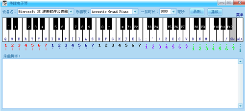 华捷电子琴官方版是一款功能极为强大的电子琴辅助软件,华捷电子琴官方版采用61键,可自定义对应键盘按键,您可以通过它进行手动编写脚本或者自我录制,欢迎下载体验。
