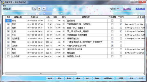 软件能在您指定的时间用人声播报或自定义的铃声的方式提醒您想要做的事甚至帮您完成您需要做的任务。如:备份文件,清理垃圾,整点报时,生日提醒等。