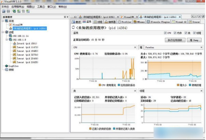 线程转储的生成与分析:VisualVM 能够对正在运行的本地应用程序生成线程转储,把活动线程的堆栈踪迹打印出来,帮助我们有效了解线程运行的情况,诊断死锁、应用程序瘫痪等问题。