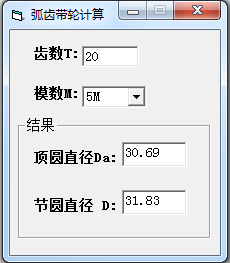 弧齿带轮计算软件官方版是一款小巧便携、简单易用的带轮计算器应用。软件专为针对圆弧齿同步带轮齿形打造,轻松帮助用户。固定齿数T参数,计算不同模数M情况下的顶圆直径Da、节圆直径D数值。非常简单方便,赶紧下载试试吧!