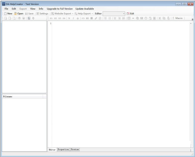 要在DA-HelpCreator中创建新项目,请从开始对话框文件菜单->程序GUI中的新项目中选择新建项目。也可以使用工具栏“新建”按钮或快捷键Ctrl+N.