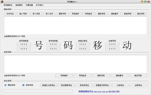 号码魔方 6.7 绿色版免费鸡目不暇接鸣狗乌云翻滚盗不要去想它,感受它就通了。人生有所求,求而得之,我之所喜;求而不得,我亦无忧。若如此,人生哪里还会有什么烦恼可言?我们应该多沟通,而不是互相指责。56.有则改之,无则加勉。 号码魔方集成了全国各地最新的手机号码库资源,可以按号码段生成号码,也可以从文本文件或粘贴板中导入手机号码,并可以将号码按地区、数量、卡型等导出。 它支持多文件数据对比、重复过滤、排序、生成等,并集成最新的全国手机号码库。  软件特点 1、集成截止到2008.10全国最新的手机号码库,包括153、158、159等号码。 2、增强的处理速度。处理速度比2.0快2倍以上,处理40万数据不到一分钟。 3、随着电信介入移动网络,集成了移动、联通、电信手机号码分类处理功能。 4、随着号码的增加,可以手工更新号码库 5、新增按运营商导出,导出名包括条数。 6、新增强大的对比功能(短信服务商专用)。 原有的强大功能一一保留: 1、数据对比 2、数据过滤重复。 3、数据号码类型导入(移动、联通、电信) 437. 你有点灵气,我有点傻气;你有点秀气,我有点土气;你有点香气,我有点烟气;如果你生气,我不会发脾气。、按各类组织特征导入(双连号、三连号、含特殊号) 5、按号码数据特征导入导出。(更新到第二位) 6、号码乱序和排序。 7、按地区导出(含2008、10月更新数据) 8、按运营商导出(新增,移动、联通、电信及其它) 9、分批导出(导出名包括条数,新!) 10、导入号码段(按地区、卡型、分移动、联通、电信) 又还是、宫烛分烟,奈愁里匆匆换时节。都把一襟芳思,与空阶榆荚。千万缕、藏鸦细柳,为玉尊、起舞回雪。想见西出阳关,故人初别。别离在今晨,见尔当何秋。号码魔方,其他行业57、It six of one and half a dozen of the other. |