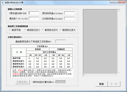 ??普通V带传动设计计算工具官方版安装简单,界面美观大方。而且实用性强、易于上手,十分实用和方便。一款非常实用的V带传动设计应用。通过这款应用你只需输入已知参数、选择工作机载荷性能、工况系数等参数就可以计算出V带传动的数据,非常方便!