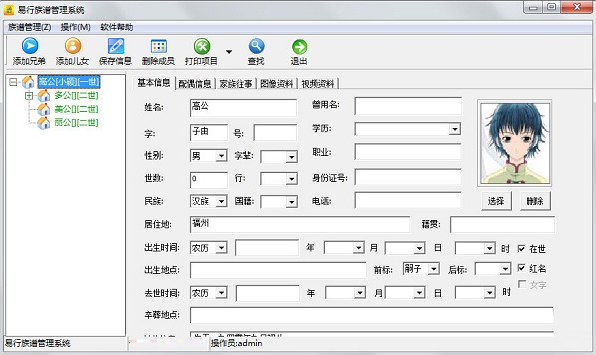 易行族谱管理系统是可以对族谱做到很好的修复,是的反应能力也很强。易行族谱管理系统支持选择分支导出打印文件,还可以对族谱进行备份的操作。