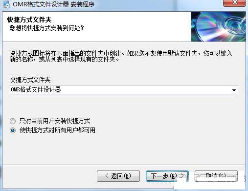 ??6、快捷方式文件夹,默认文件夹“OMR格式文件设计器”,点击下一步;
