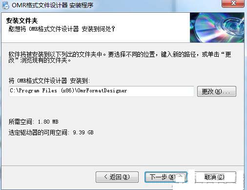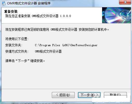 ??5、选择安装文件夹,默认文件夹“C:Program Files (x86)OmrFormatDesigner”,点击下一步;