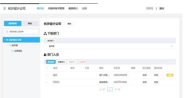 组织架构可添加成员,部门,批量导入员工、调整部门、批量离职等功能。