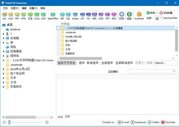 Total CSV Converter可以把CSV格式转换成DOC、PDF、HTML为TXT、XLS、DBF、XML或OpenOffice的格式。Total CSV Converter格式转换器是一个可靠的工具,使用方便、用户界面友好。