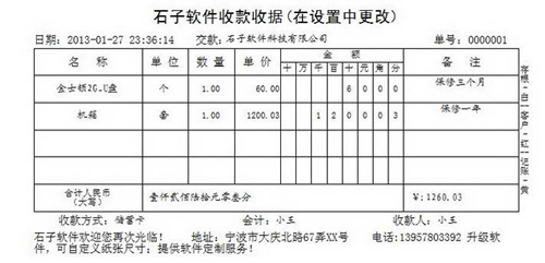 石子通用收据打印专家官方版功能齐全、数据丰富的收据打印软件。软件用途非常广泛,功能非常强大。适合打印多种收据,操作简单,使用方便,还可以对收据内容保存管理。简单实用,免去手写收据的麻烦和偏差。