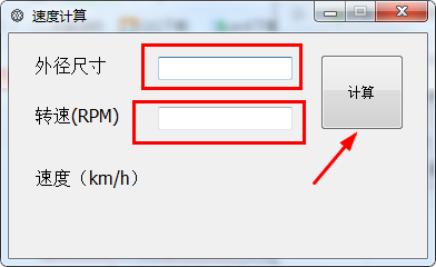 2、输入相应的外径尺寸(厘米)与转速RPM,点击计算即可