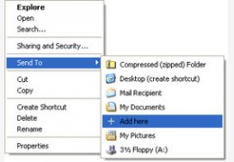 一:Sendtosendto安装后即可使用,没有程序界面,也不必做任何设置,就是两个字:简单。当你用鼠标指向一个文件或文件夹右击时,在弹出的右键菜单中的“发送到”下级菜单里,会发现一个Add