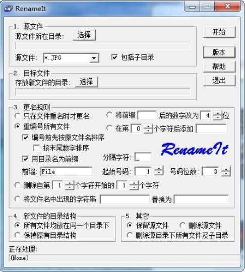 (2).将所有文件重新编号,新文件名=前缀+分隔字符+编号,前缀可以指定,或用子目录名为前缀;
