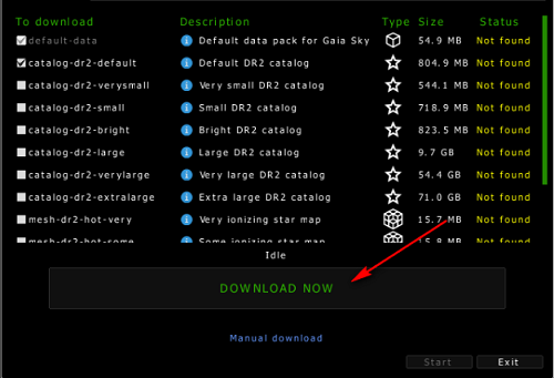 ??4、可以看到Gaia Sky需要下载的内容很多,有700MB,有几个GB的星空数据